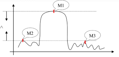 带外抑制测试:测试频率F1对应的增益标记为M1,M2=F1-50MHz,M3=F1+50MHz,带外抑制△M=M1-M2或者△M=M1-M3,如图7和图8:
