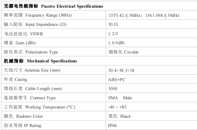 *备注* :上述为天线基本参数、详细信息请参考具体规格书!
